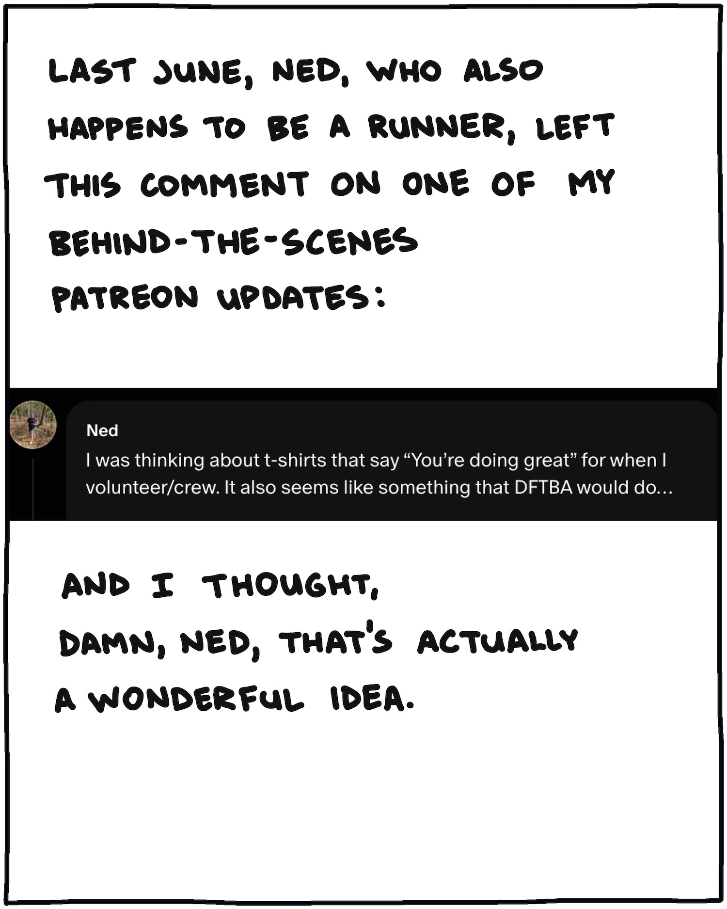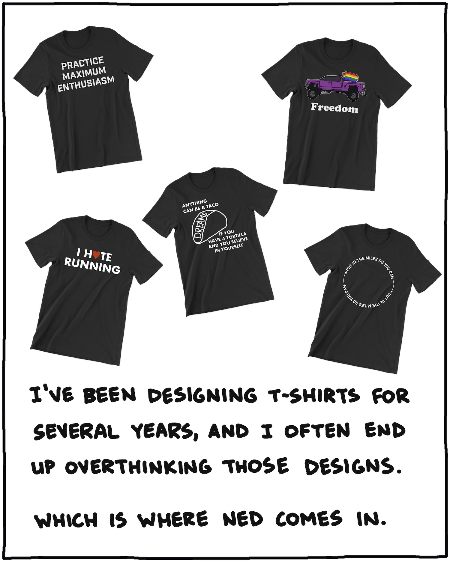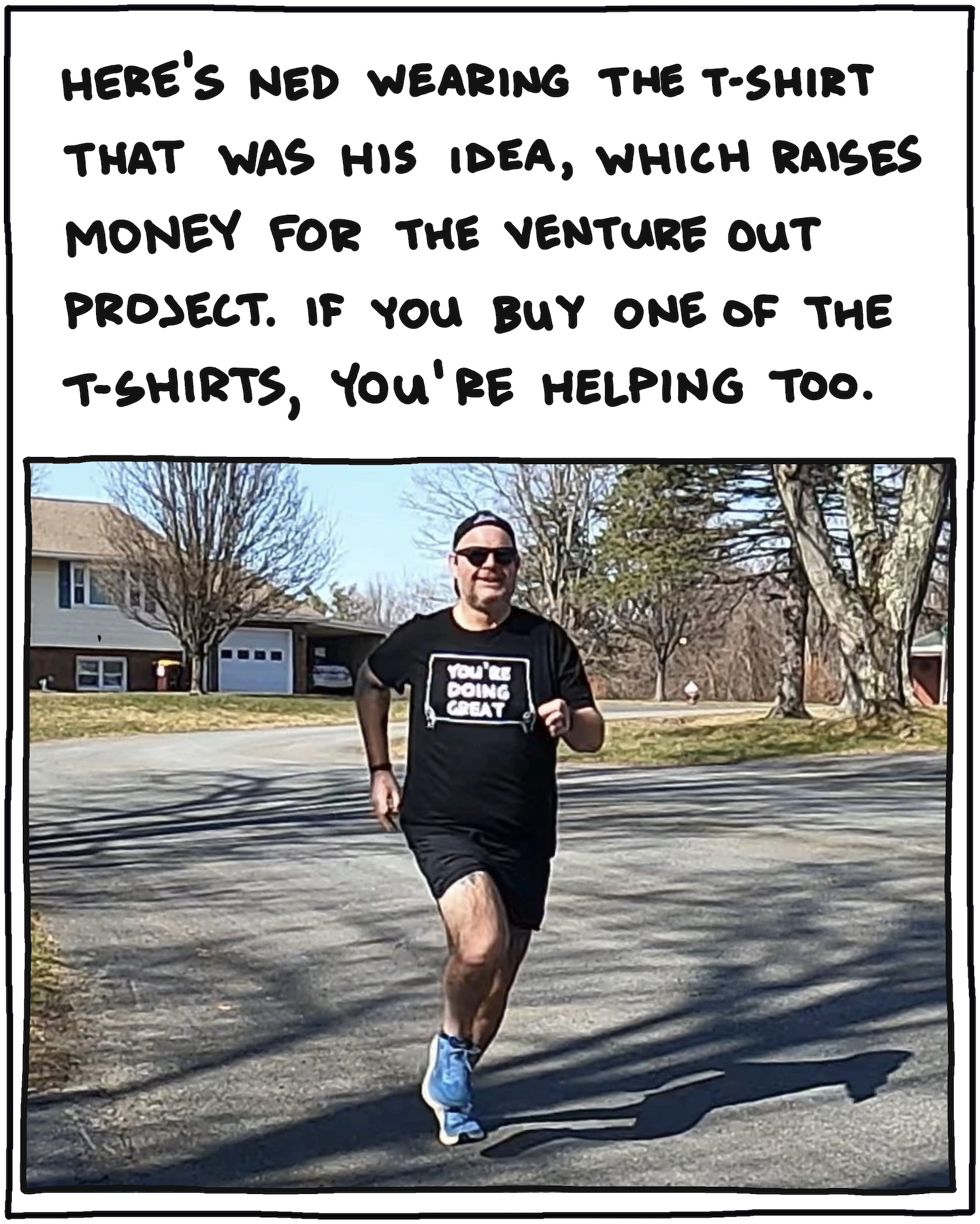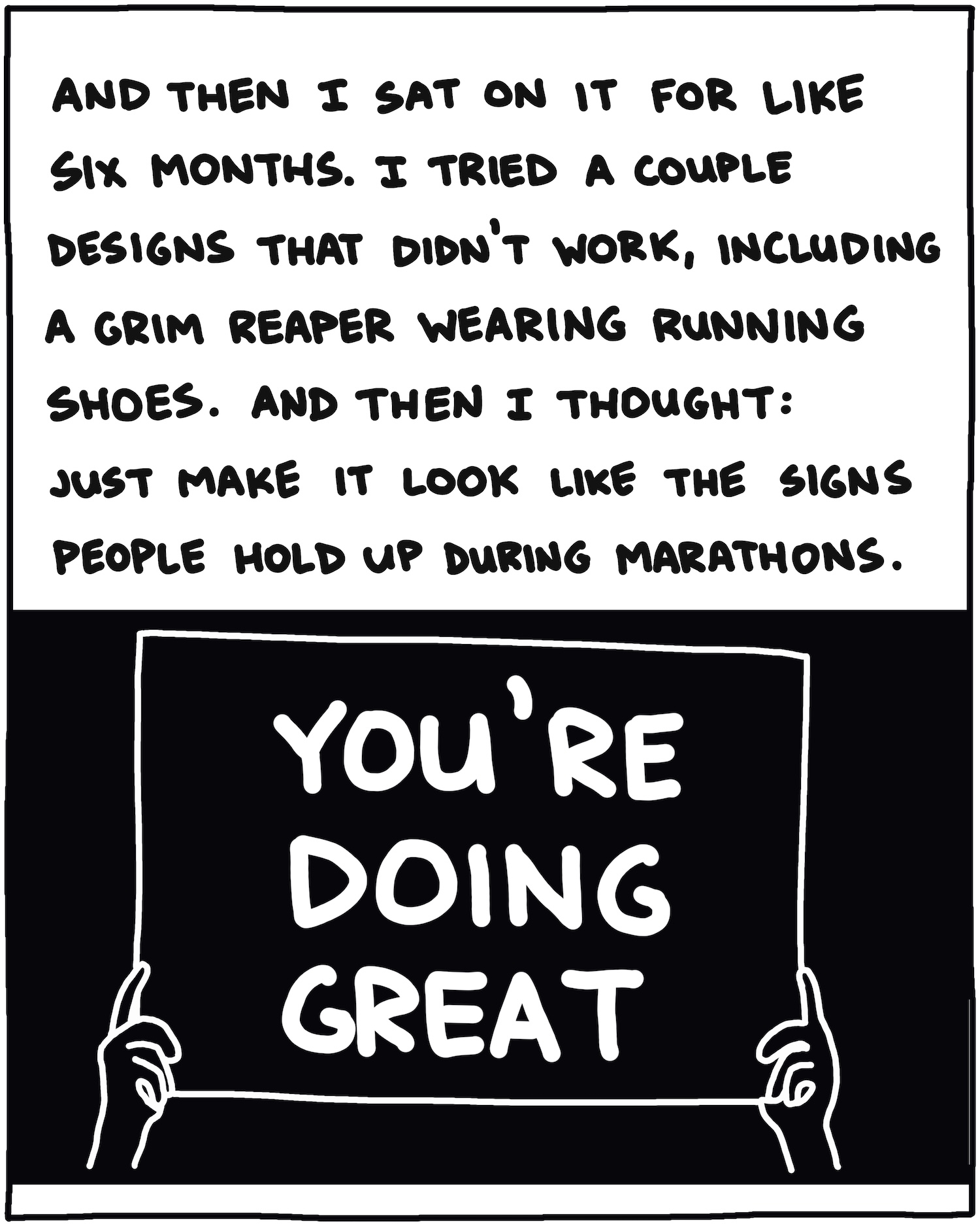 Finally: I made this series of slides about the process of making the “You’re Doing Great” shirts, and how the idea came about: