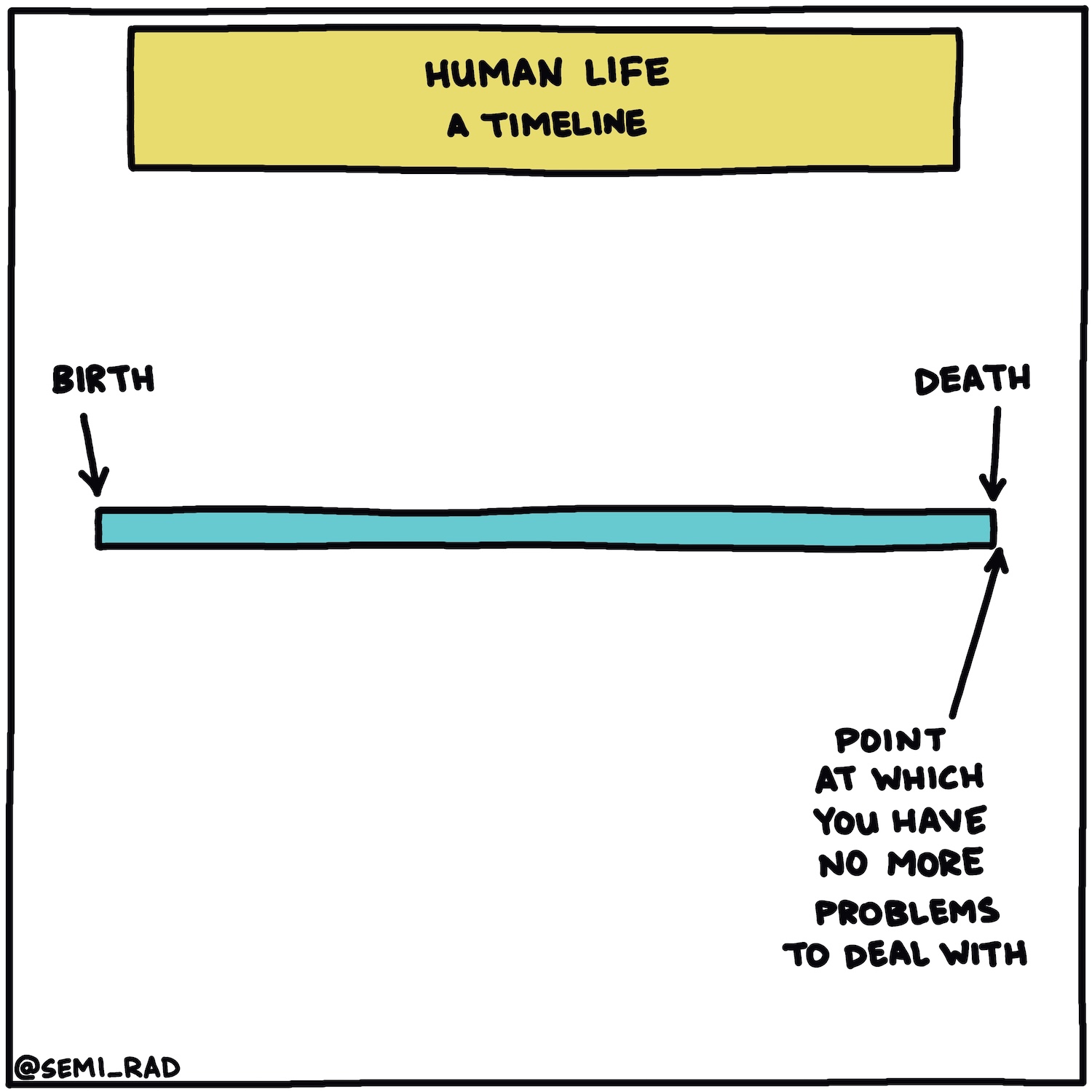 “The author and podcast host Sam Harris recalls being at lunch with a friend, moaning on about the various problems he was confronting in his work, when she interrupted him mid-flow. ‘Were you really expecting to have no more problems at some point in your life?’ she asked.” (page 76)